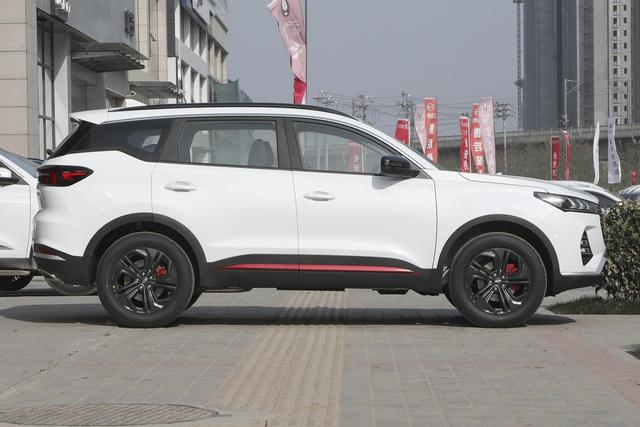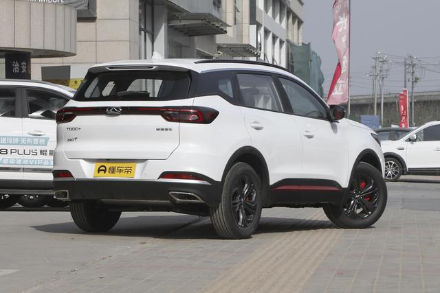 瑞虎7的外观,采用了简约时尚风格设计,白色车身配黑色饰件,显得十分干练。车身底部用红色饰条点缀,彰显出了运动感,18英寸黑色轮毂配红色卡钳,颜值较高。