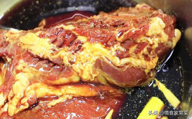 3、制作卤牛肉一定不能偷懒,必须提前用酱油浸泡,这样能够去腥增香,更加入味。
