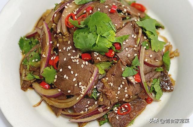 这样凉拌的牛肉,既开胃,又香辣,吃起来不会油腻,而且口感很丰富!