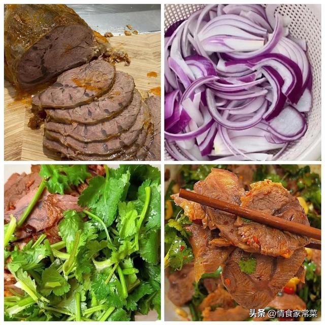 主要食材:卤牛肉、大葱、生姜、洋葱、香菜、生抽、香油、醋