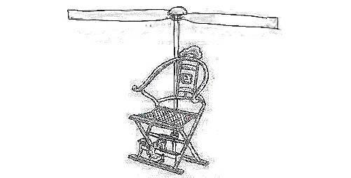 中国苏州的巧匠徐正明就整天琢磨竹蜻蜓、奇肱飞车,经过十几年的"钻研",他终于制造一架"直升机",把人类也带上天去。它有一个竹蜻蜓一样的螺旋桨,驾驶座是一种栲栳椅,依靠脚踏板带动螺旋桨的转动,试飞的时候,他能够飞离地面一尺多高,还飞过了一条小河,然后才落下来。