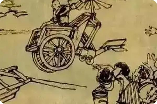 元顺帝时期,有一名姓王的漆工,也制造过一架“飞车”。据记载,这种“飞车”两旁有翼,内设机轮,转动则升降自如,上面装置一袋,随风所向,启口吸之,使风力自后而前,鼓翼如挂帆,度山越岭,轻若飞燕,一时可行四百里,愈高飞速愈快。