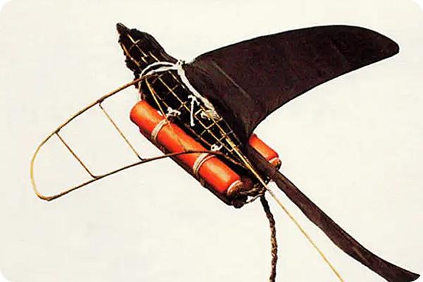 明代出现过一种被称为“神火飞鸦”的火箭。明朝初年,有人把风筝上的五彩灯笼替换成了火药发射以后能飞一百多丈才落地,这时候,装在“神火飞鸦”背上跟起火相连的药线也烧着了,就会引起内部火药爆炸,如果撞击在敌人的军营,就会燃气熊熊大火。这就是赫赫有名的“神火飞鸦”,即《武备志》中所记载的“飞空击贼震天雷炮”和“神火飞鸦”,——这是现代飞弹的雏形。