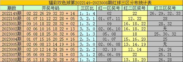 双色球第2023009期红球三区号码判断:(红一区01-11区段,红二区12-22区段,红三区23-33区段)