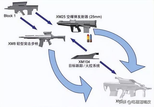 而所谓XM8,就是OICW发展遇到瓶颈以后,拆分出来的KE武器系统,直接成为一种新的步枪;而拆分出来的HE武器系统,则成为XM25 CDTE。