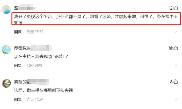 评论区有网友表示她只是暂时离开央视,并没有辞职,而暂别的原因是因为她的感情,她离婚了。