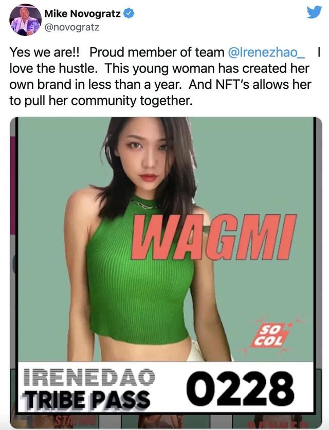 这些照片并非为了满足视觉刺激,拥有这些照片NFT相当于是IreneDAO的成员身份标识,更通俗说,相当于成了Irene Zhao的“官方认证粉丝”。