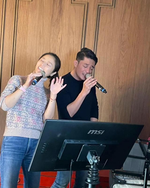 除了二人自拍合照,林心如还发了几张他们夫妻二人合唱的照片。