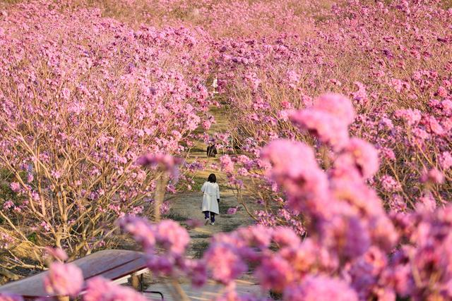 近日,广东省江门市新会区大泽镇山头坪大面积紫花风铃迎春绽放。