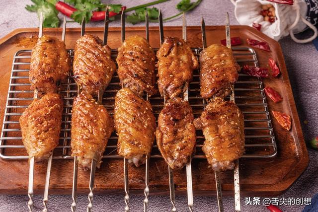 制作工艺:(1)首先将鸡翅腹部划上两刀,置于清水中,冲洗一小时,把血水以及杂质排出来,随后捞出控干水分,用吸水纸吸干水分。(2)鸡翅纳入盆中,加鲜味宝,白糖,蚝油顺着一个方向搅打至起胶上劲,随后加户户辣椒粉,奥尔良腌料继续搅打,直至均匀腌制三小时,充分入味即可。(3)将鸡翅串起来,放入烤架上烤制五成熟,刷上烧烤油,继续烤制熟透,撒上孜然辣椒面即可。