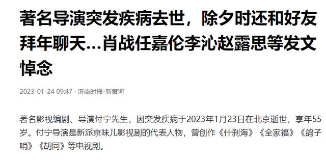 可到了大年初二,也就是2023年1月23日,付宁因突发疾病去世了,年仅55岁。