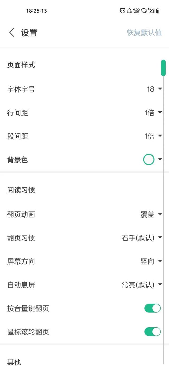 像亮度调节、暗色模式、语音朗读、字号、间距、背景、翻页动画等都可以自由调节,阅读体验更舒服。