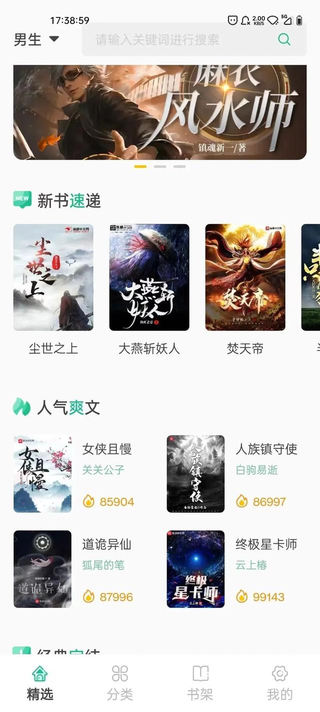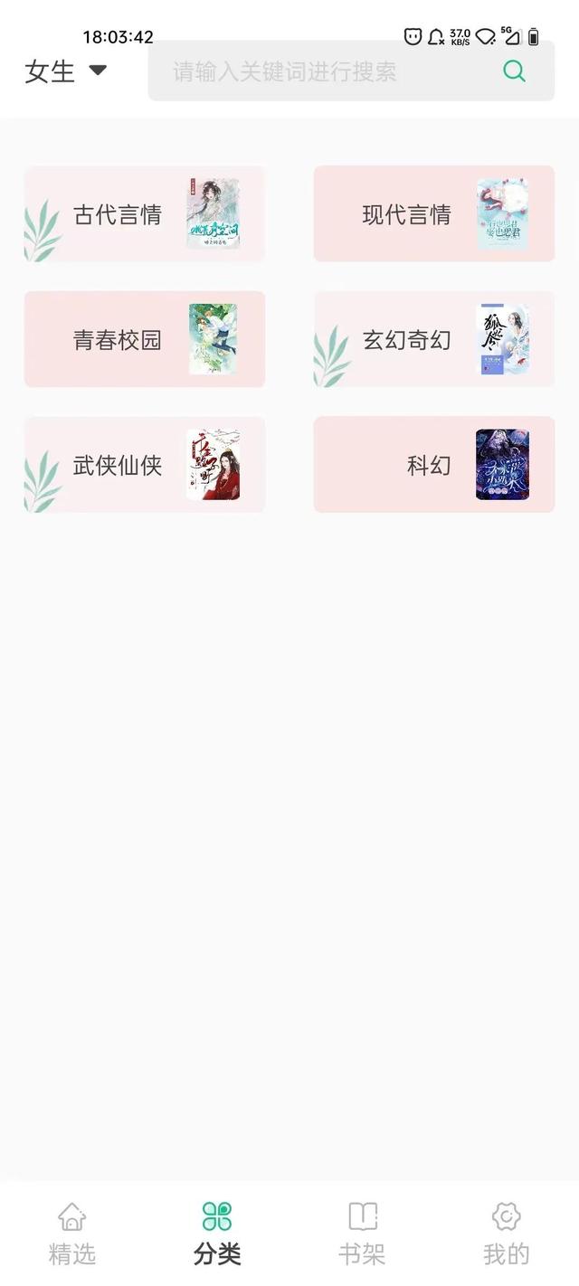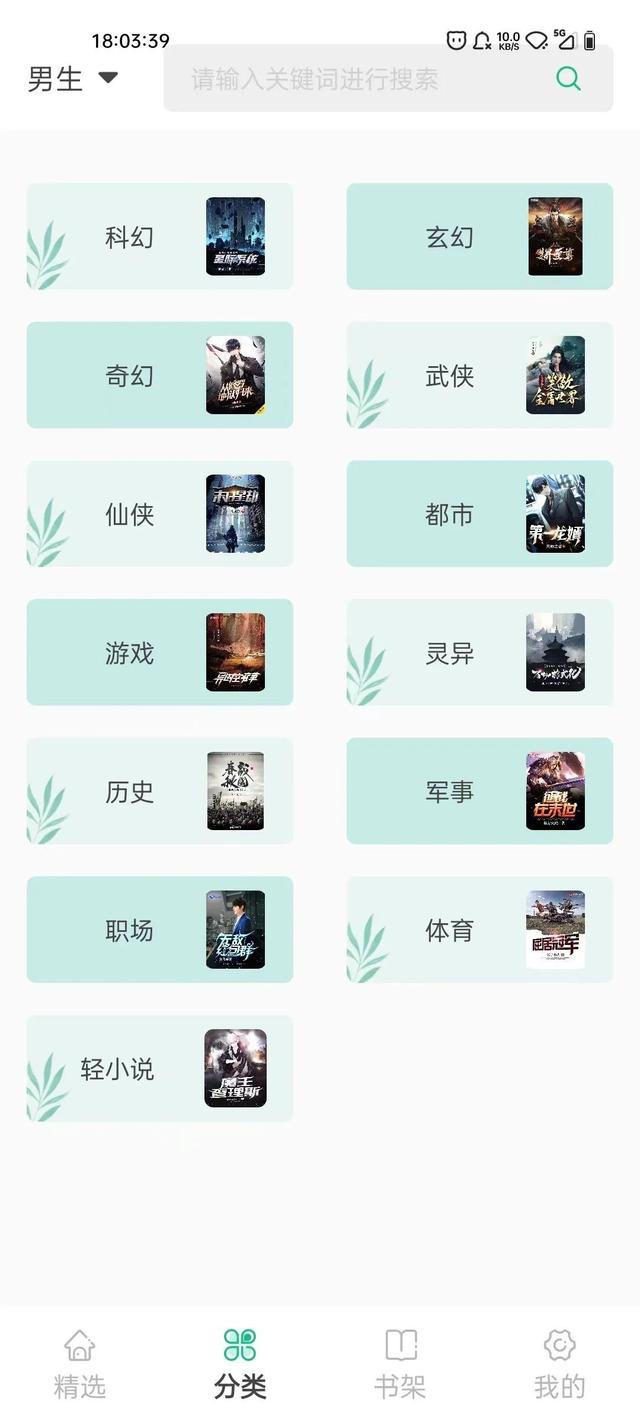小说分类这块,不论是男生喜欢的,还是女生喜欢的,如科幻、玄幻、仙侠、都市、灵异、军事、言情、青春校园等等都是一应俱全。