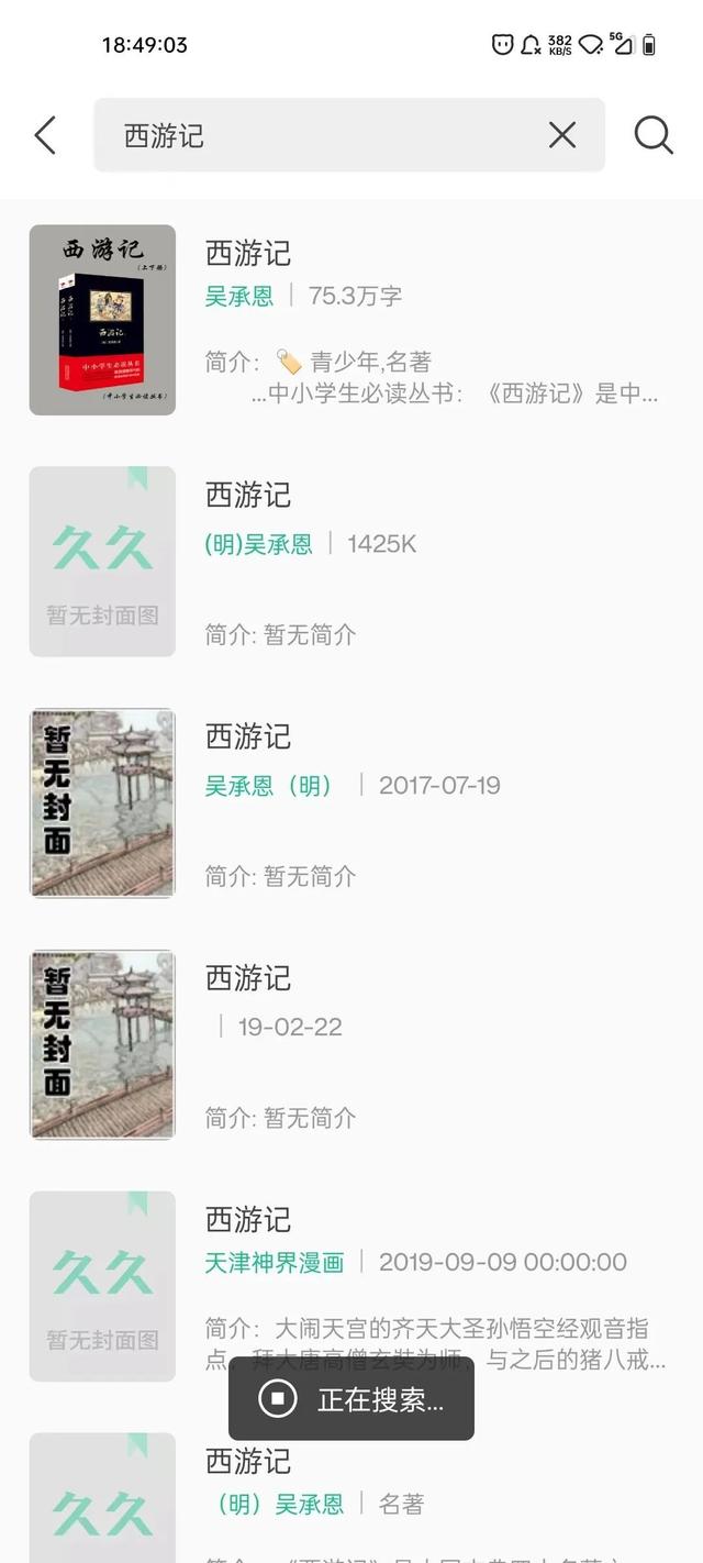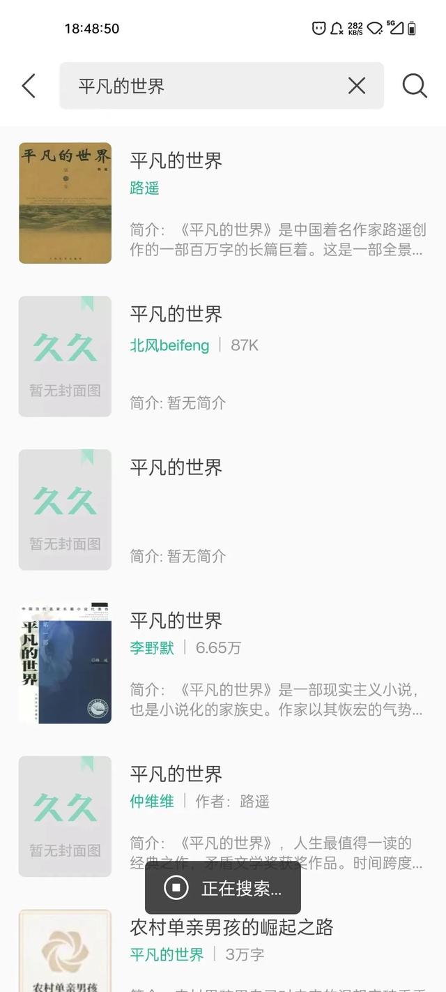 除了用来看网络小说,诸如名著、出版书籍等等也可以轻松搜到。比如《西游记》和《平凡的世界》,就搜索出很多资源。