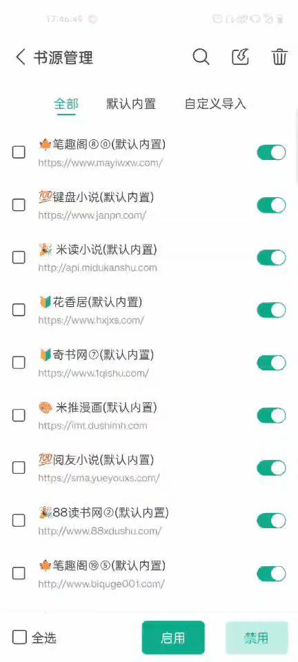 里面内置了几百条书源,像笔趣阁、小书亭、番茄小说、八一中文等热门小说资源站应有尽有,并且软件自带,无需手动导入书源。