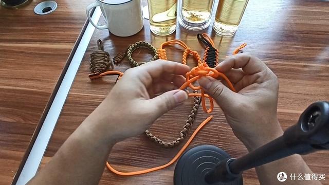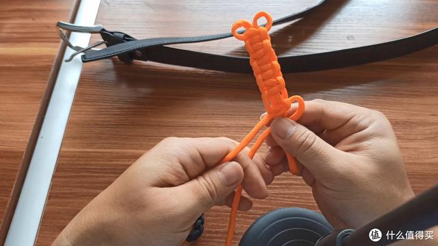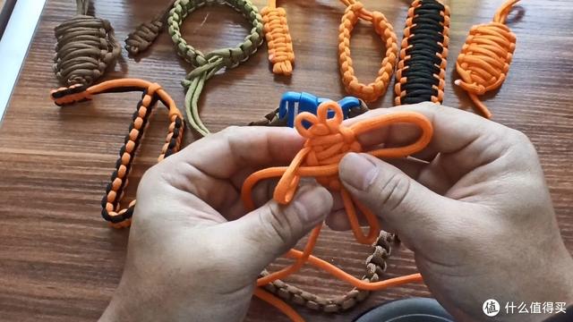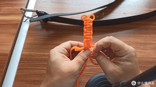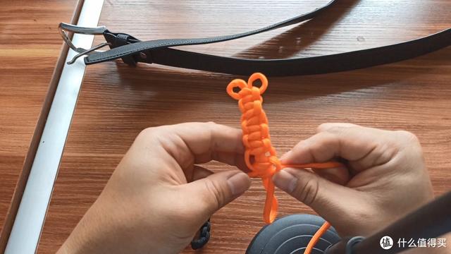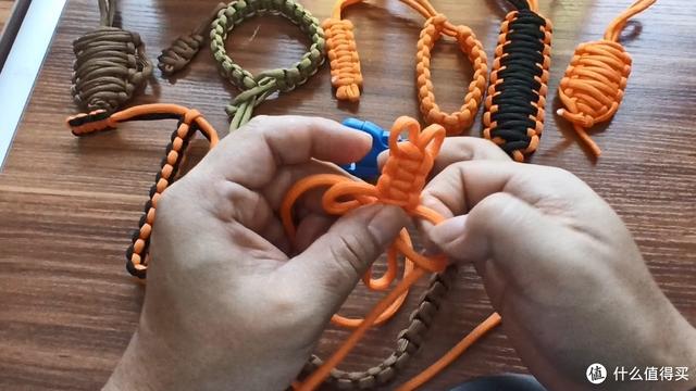 这个要做的是腰带扣,是实际上应该是按腰带扣的颜色来准备伞绳的,因为是第1次共享步骤,所以我用了比较鲜明的橙黄色。