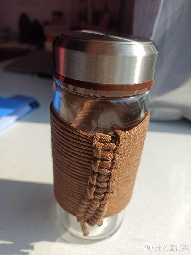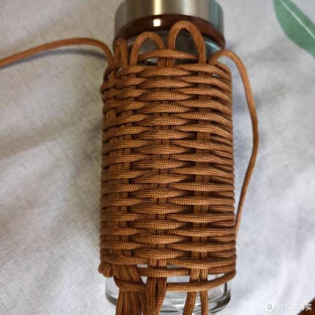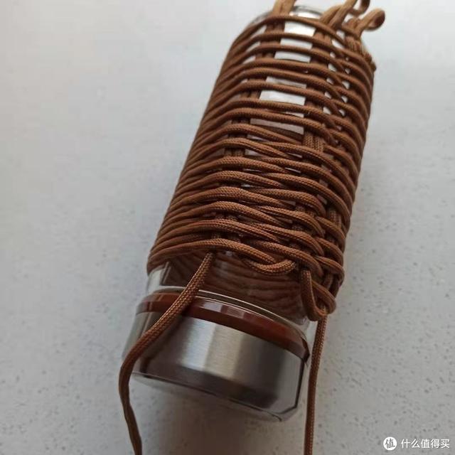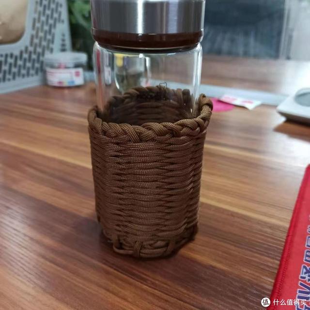 起初是因为喜欢的一个单层玻璃杯,倒茶的时候很烫手,网上附送的杯套又有气味,于是想自己做一个,找了很多编织伞绳的教程和视频,展示出来的都有点不合心意,慢慢的摸索,制作了一些小作品,也终于做好了玻璃杯的保护套,向大家分享。