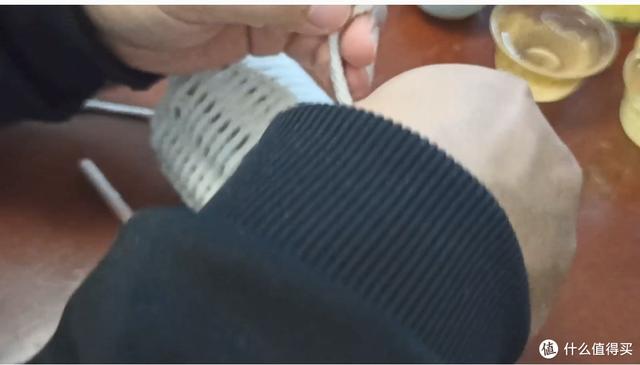 编的时候要编得宽松一点,编好后放进水里让它缩水变结实一下,造型扎扎实实的。使用起来很顺手。也没有其它味道。还可以防撞、防震、防划伤。给单层玻璃杯使用,确实超方便。得意的笑。