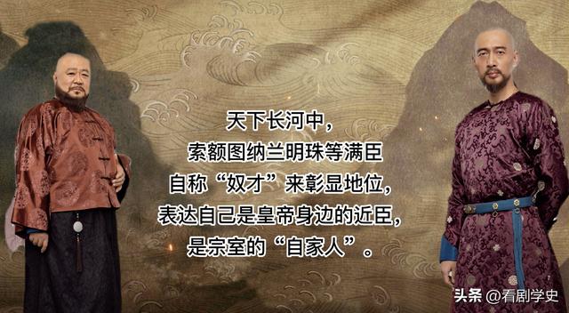 因此,虽然在我们中国人的字典中,“奴才”是低于“臣”的,充满贬义。但在清朝,“奴才”却比“臣”更具含金量,是一个身份的象征。因此,天下长河中索额图纳兰明珠等满臣自称“奴才”来彰显地位,表达自己是皇帝身边的近臣,是宗室的“自家人”。