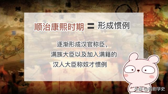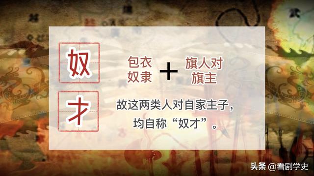 因此,虽说满人建立了清朝,但从奴隶制大跨步到封建制度,导致很多奴隶制的习俗还保留着,这奴才的称号便是如此。