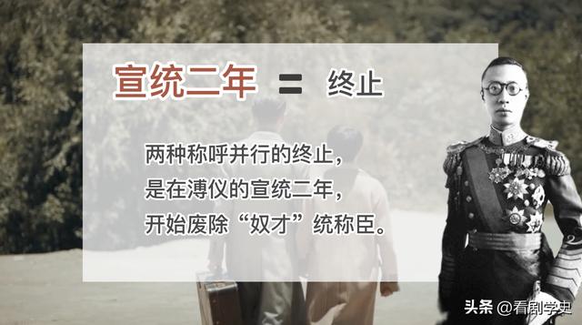 两种称呼并行的终止,是在溥仪的宣统二年,开始废除“奴才”统称臣。不过,自民国之后,便也很少使用和提及了。