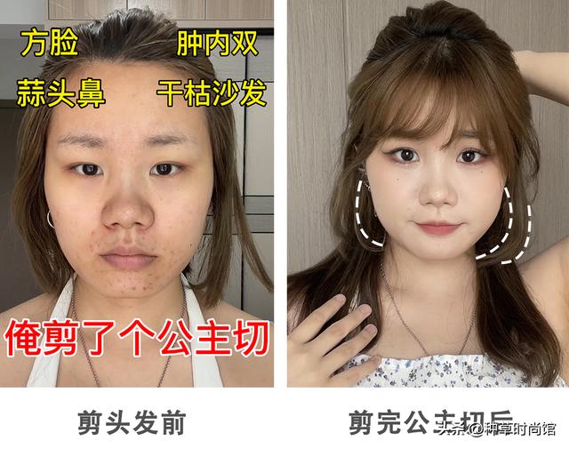 做了很多功课,发现好多人都说公主切可以修饰脸型,方圆脸的我立马冲去理发店剪了个头,结果tony把我剪成这样我真的不知道怎么出门了…