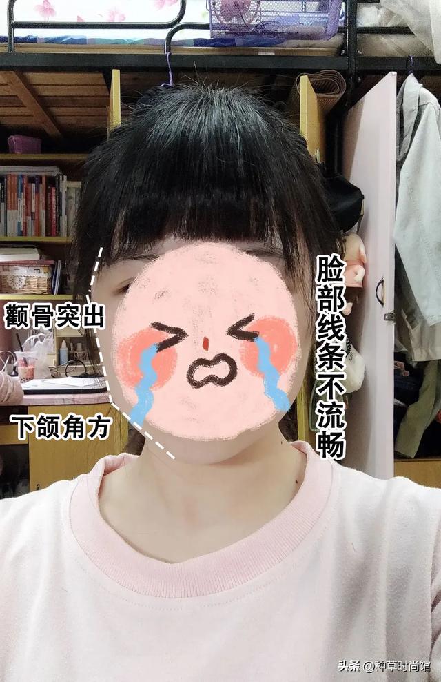 问题②刘海太宽了,既显脸大,又有种憨憨的感觉。
