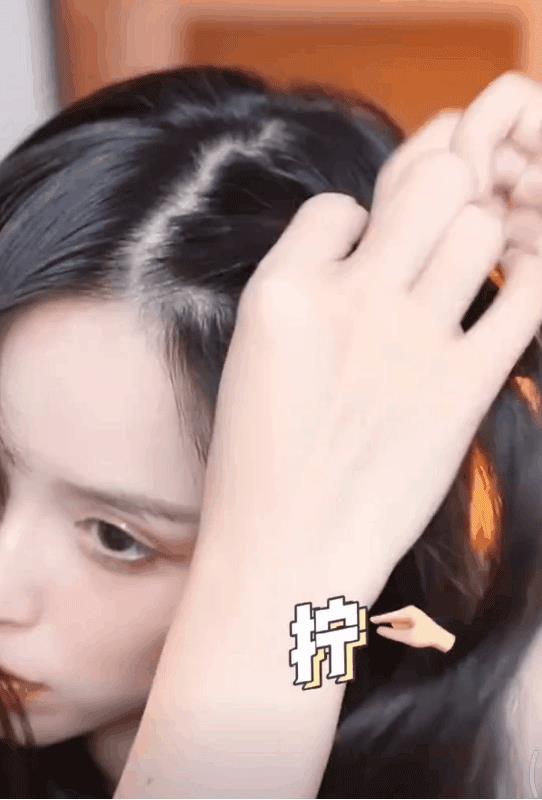 ②头发中部可以往内卷,增加脸两侧头发的蓬松度,更显脸小。