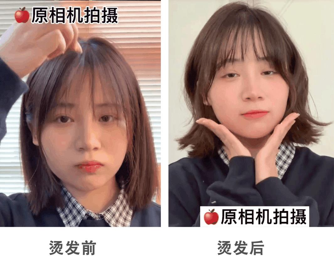 ②小月本身头发就比较多,加上烫的卷度比较小,烫完容易一整个爆炸。
