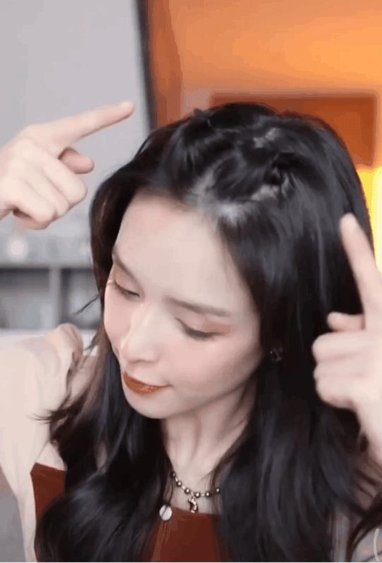 另外,还可以②用小夹子(鸭嘴夹、小抓夹)把刘海夹起来,打造精致甜美公主头~