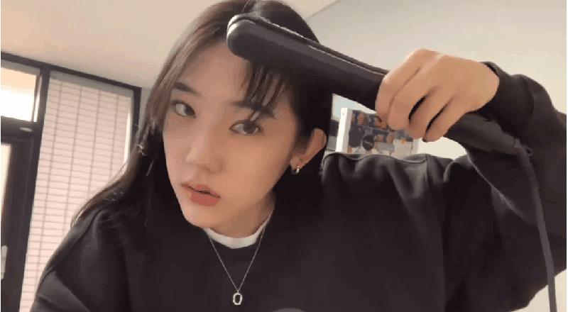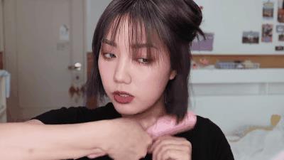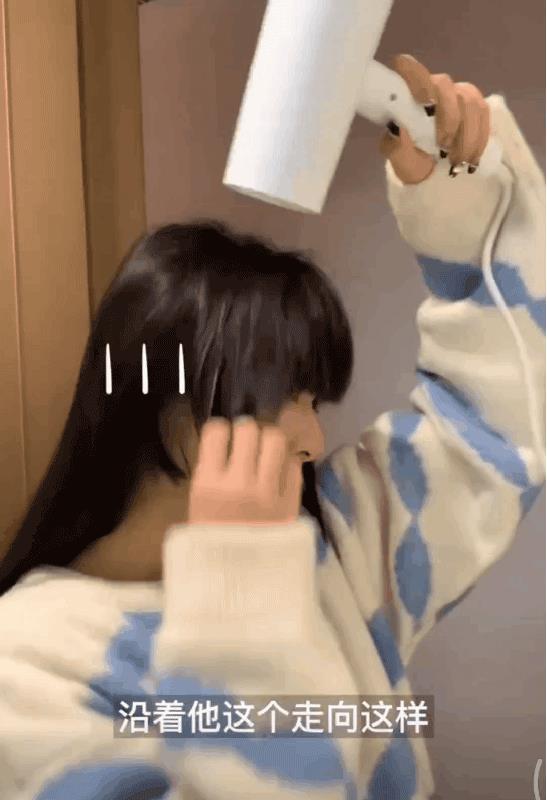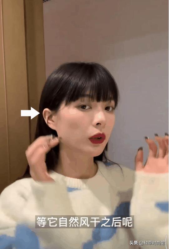④最后像这位姐妹是菱形脸或者颧骨高的姐妹,记得把八字刘海按照往外画C字的方法卷一卷,才能更好地修饰颧骨。