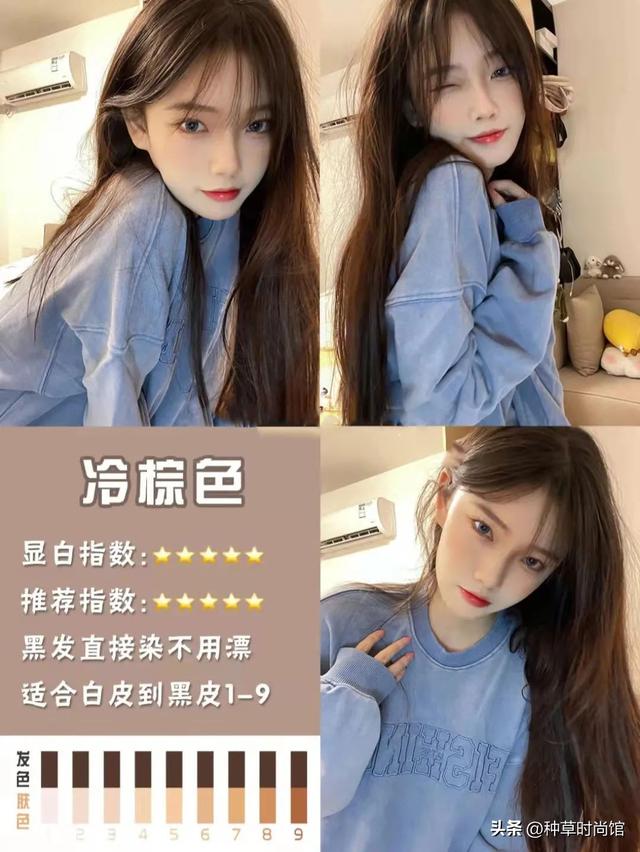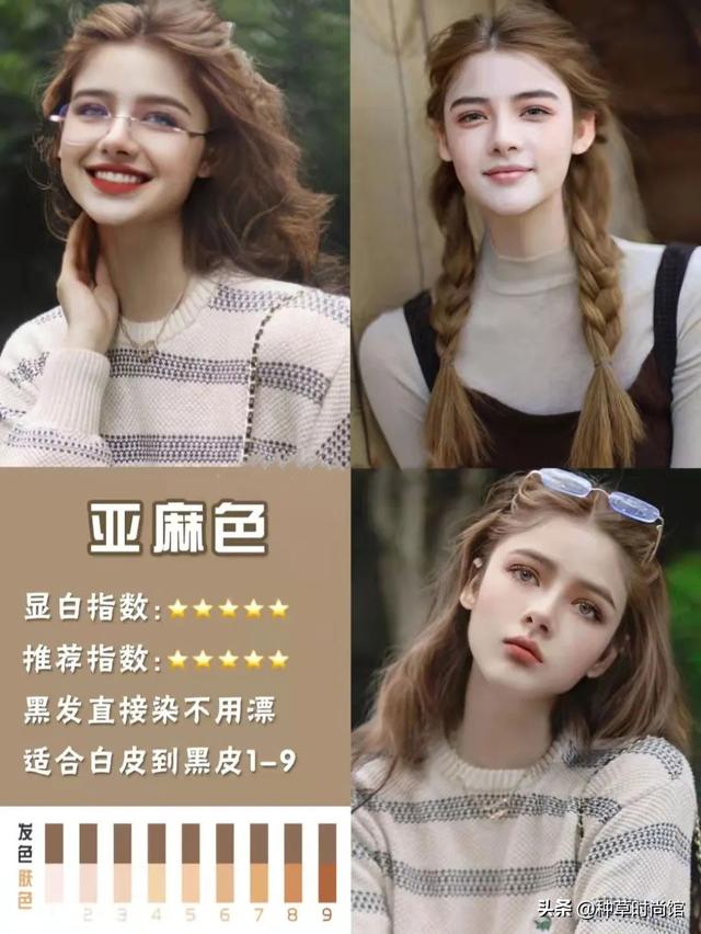 建议换成亚麻色、冷棕色、米棕色,都是不挑肤色的,显白日常又减龄,看起来也更清新甜美。