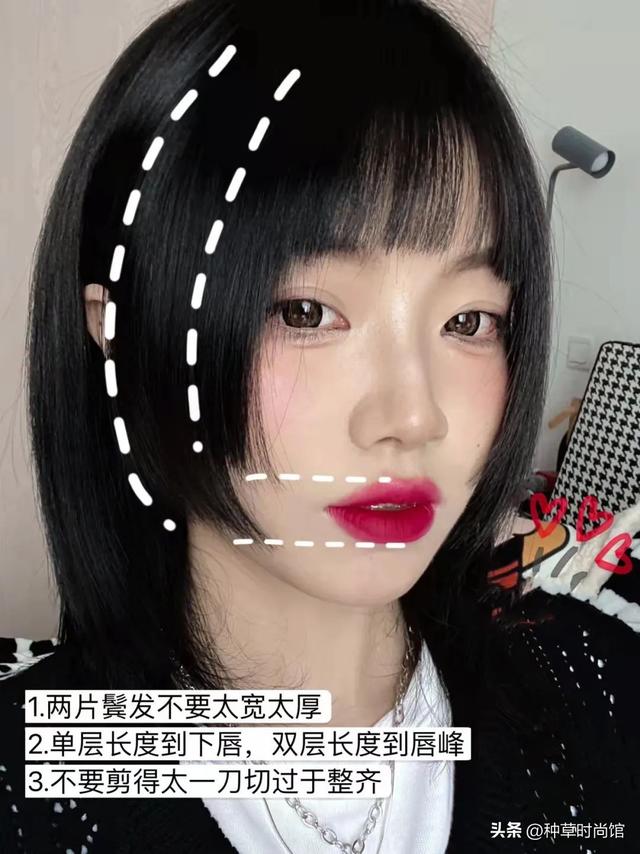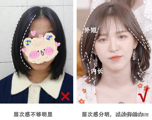 这位姐妹翻车的主要原因在于两点。①太短,起不到修饰脸型的效果。