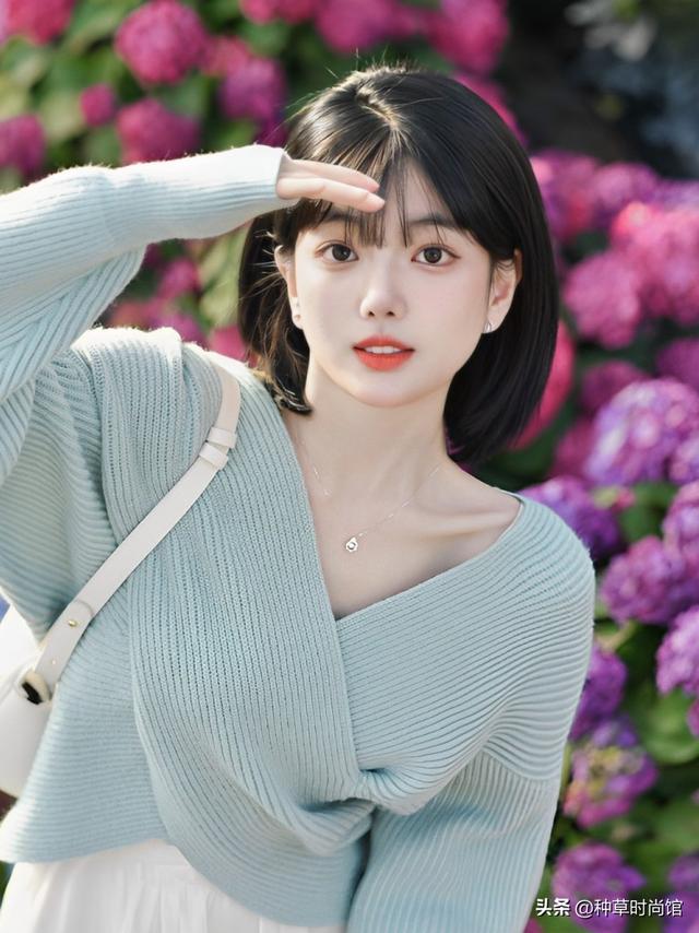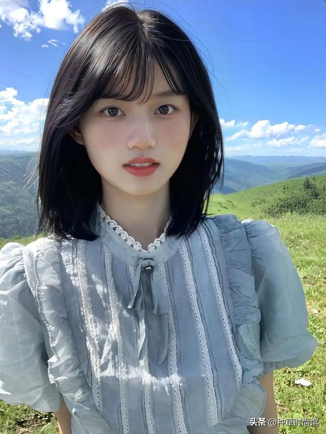 发尾外翻增加了头发横向的宽度,qiao显脸小,还hin有韩系小姐姐的元气少女感!