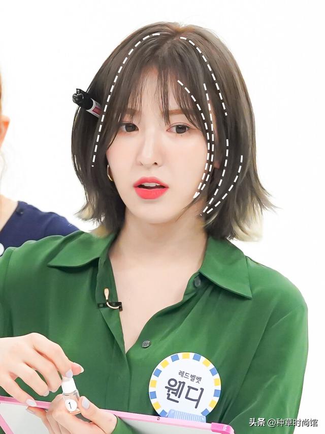 wendy头最重要的就是要剪出层次。上层短下层长,外层短里层长,最短的部分要到耳朵下面,才能更好地修饰脸型。