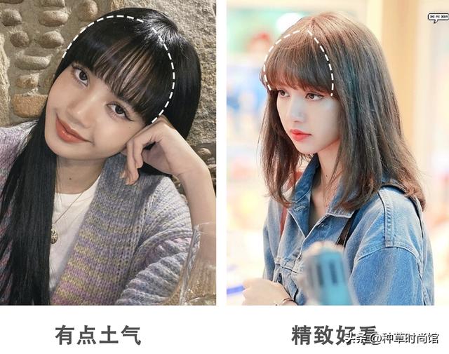 Lisa有一段时间刘海太宽了,显得五官圆圆钝钝的。后面调整到眉尾左右的宽度才精致了不少