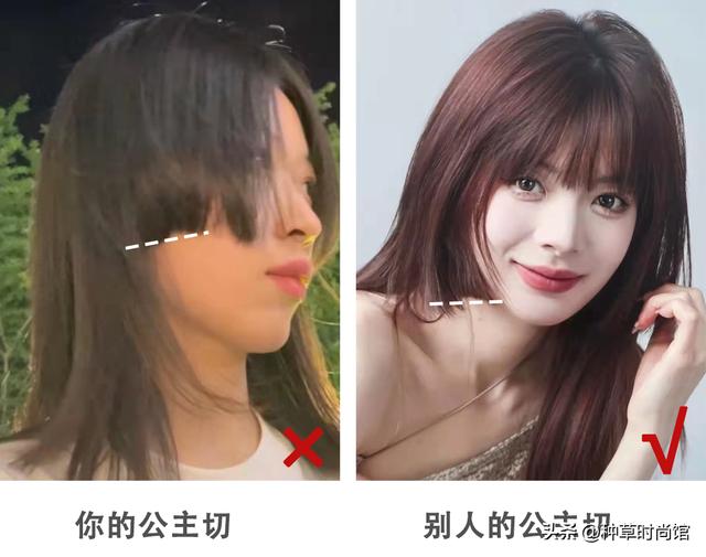 ②没有层次感,看起来很厚重。公主切一定要剪出前后的层次感,整个发型看起来才会比较轻盈、时髦。