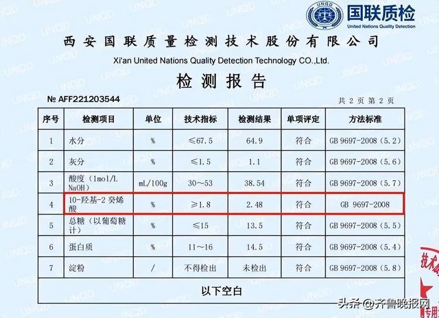 首先来讲,衡量一个品牌的质量高低,有一个指标是非常关键的,就是王浆酸含量的高低,蜜之珍的蜂王浆中的蜂王浆酸含量在2.4左右,远超同类产品,就目前蜂王浆的市场,基本王浆酸含量都在1.4以上,1.8以上,只是达到国家标准。而蜜之珍蜂王浆中的蜂王浆酸含量远远超过国标标准。