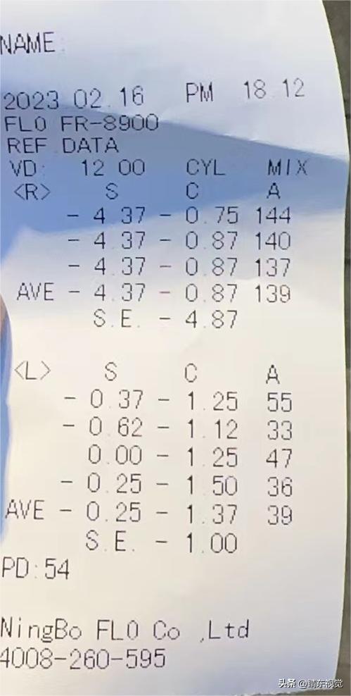 左眼25度近视,137度散光,散光轴位39;