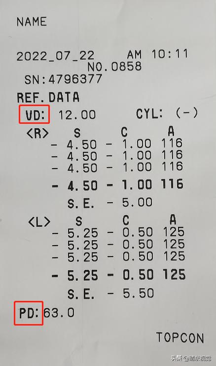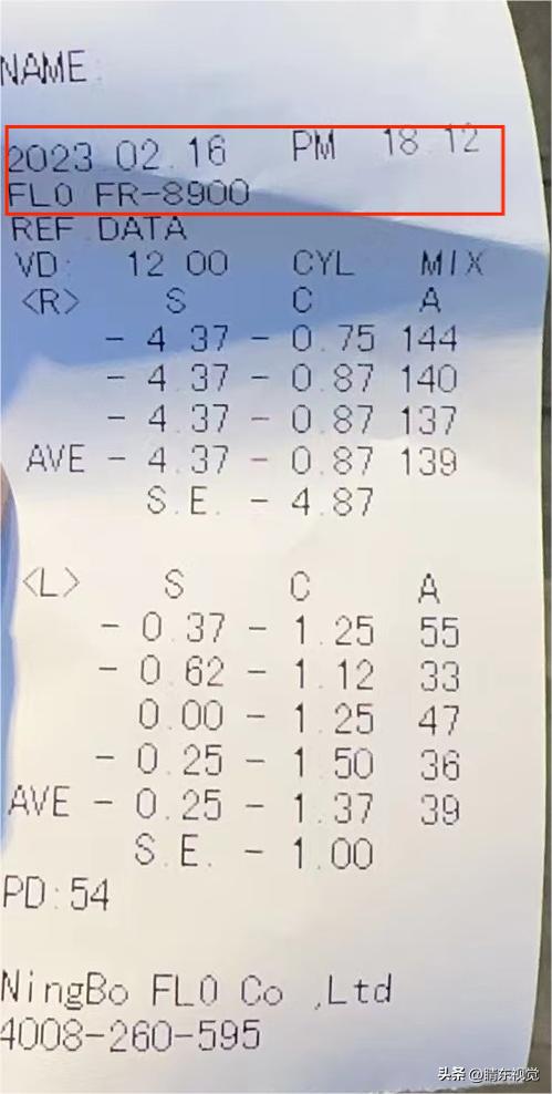 —–在验光单开头,有检查的日期时间、编号信息