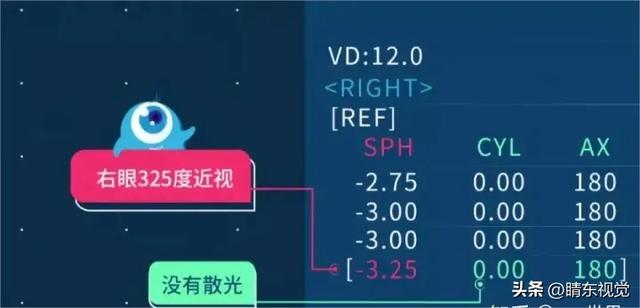 近视无散光↑↑↑ 近视325度