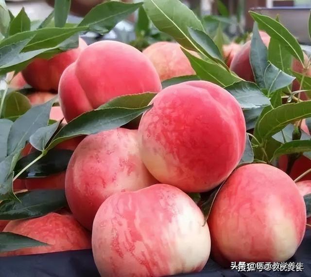 桃子,桃子是常见的水果,桃子果肉中含有较多的蛋白质、脂肪、糖、钙、铁、维生素B、C等人体所需的营养物质,可起到活血化瘀、润肠通便的作用。
