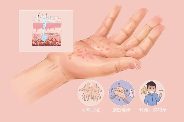 除了瘙痒,有的患者可能会伴随着刺痛或烧灼感,手脚多汗的情况也经常出现。