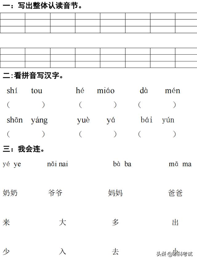 幼小衔接语文期末复习卷一