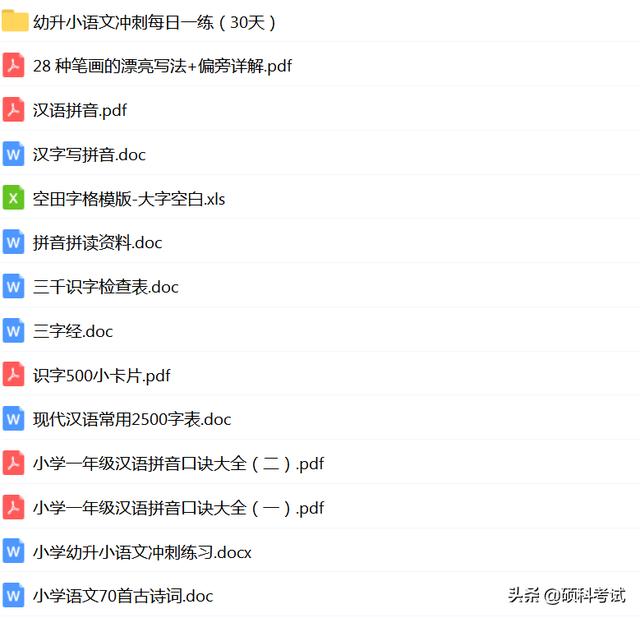 幼小衔接语文期末综合练习卷29套共71页,可用于期末复习、暑假预习。主要包括拼音、声母、韵母、部首、笔画、笔顺、古诗、看图写话等题型都是大班和一年级需要学习的内容。适合即将升一年级孩子巩固基础、提前预习争取开学快人一步,建议家长收藏、打印练习!