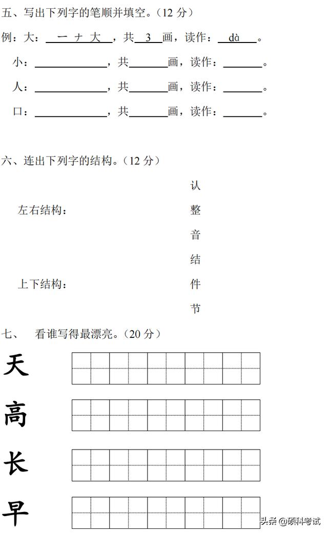幼小衔接语文期末复习卷七