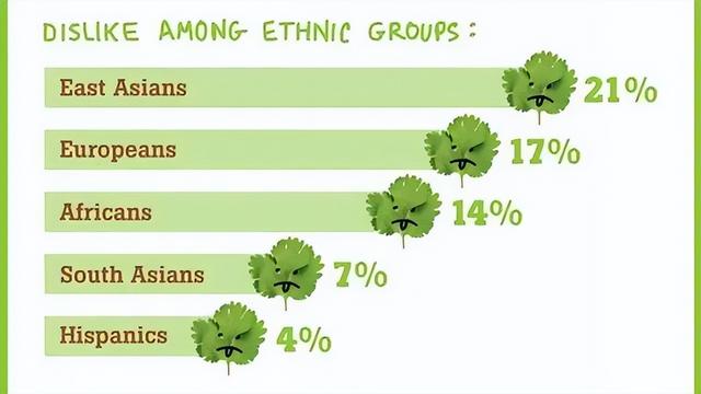 一篇发表在英国《Flavour》期刊上的论文显示,根据地区和种族差异,约有3%~21%不爱吃香菜。