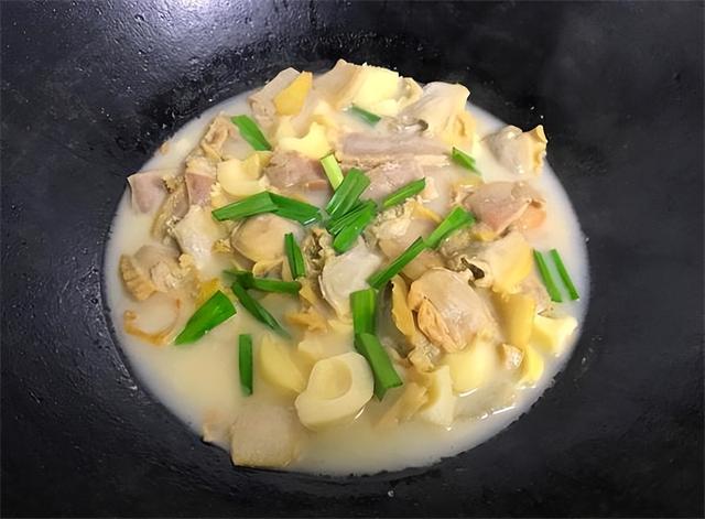 饭店里的河蚌炖汤,会放入豆腐、咸肉、菜心、木耳,用高汤炖成金黄色,浓浓的一大碗,但河蚌本身没有那么浓厚的鲜味,为了让汤好喝,加入了鸡精、浓汤宝一类配料。