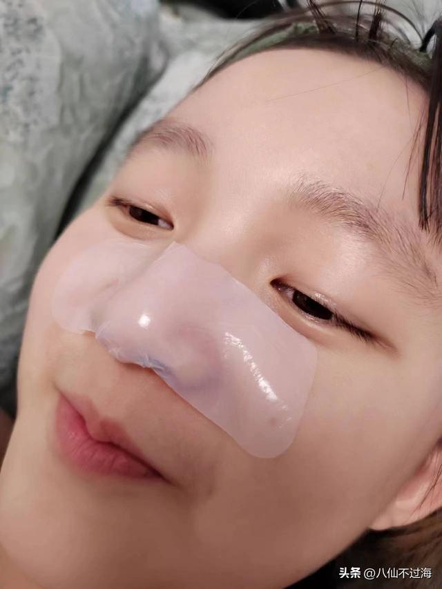 使用气泡机之前,首先要选择自己合适的吸头,安装到气泡机的顶端,然后在透明水箱一侧倒入附赠的温泉水护理液。之后把脸洗干净,然后用1号导出贴贴在鼻子上敷二十分钟,这个鼻贴通过了CMA人体功效检测,核心主打捕获浮游技术,让毛孔充分打开,黑头浮出来,这个时候就可以打开全能小气泡机,开始上手操作了。
