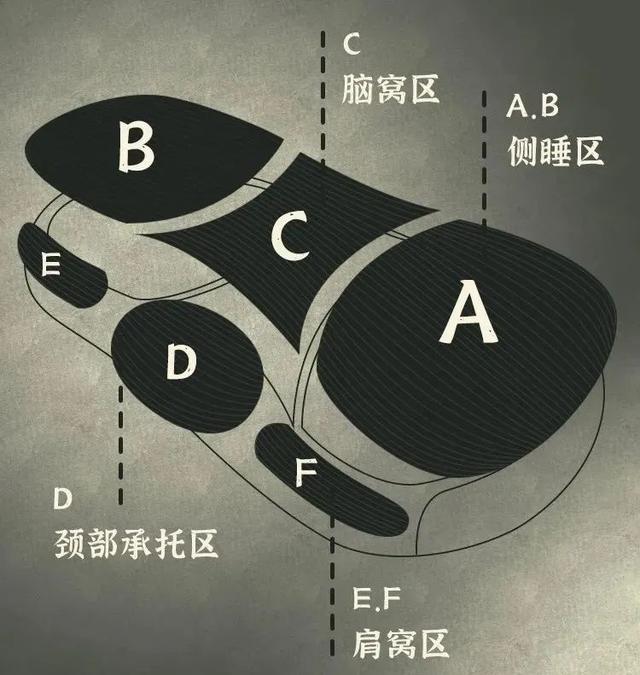 有分区的枕头,承托区可以很好地支撑颈椎,使得平下时呈现最完美的状态,确保颈椎的曲线不会扭曲。